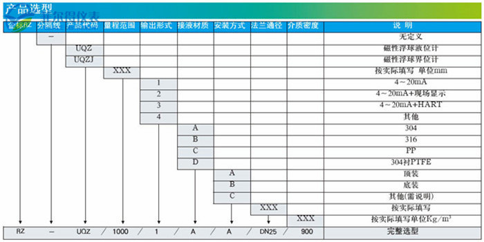 浮球液位計 浮球式液位計是以磁浮球為測量元件,通過磁耦合作用,使傳感器內電阻成線性變化,由智能轉換器將電阻變化轉換成4~20mA標準電流信號,并疊加HART信號輸出或就地液晶顯示,可現場顯示液位的百分比、4~20mA電流及液位值,遠傳供給控制室可實現液位的自動檢測、控制和記錄。該儀表適用于石油、化工、電力、輕工及醫藥等行業污水處理及各類常壓和承壓容器內介質液位的測量,尤其對于地下貯槽、貯罐的液位測量為理想。
